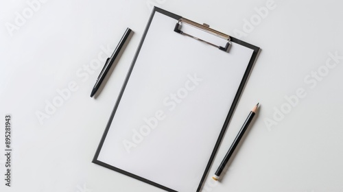 Positive words on a lightbox with clipboard and blank paper on white background top view Close up shot