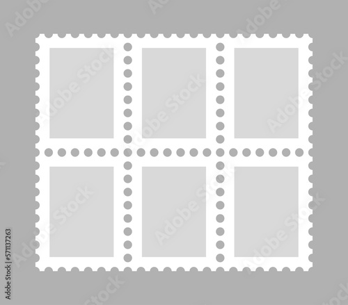 Postage stamp icons set. Symbol of mail, congratulations or postcards. Stamp for an envelope with a letter.