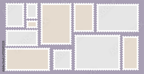 Postage stamps in flat design - vector clip art. Set of blank stamps with frames, background illustration, border collection in vector.