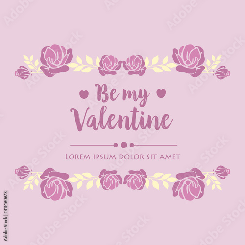 Poster design elegant happy valentine, with pink wreath frame unique. Vector