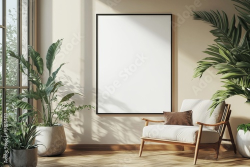 Poster Frame in Beige minimalist living room interior created with generative AI