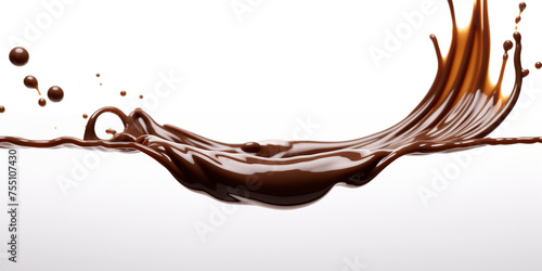 Pouring chocolate dripping, white background, professional photo сreated with Generative Ai