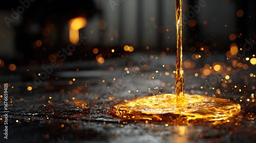 Pouring Liquid Gold Creating a Splashing Pool with Dark Background