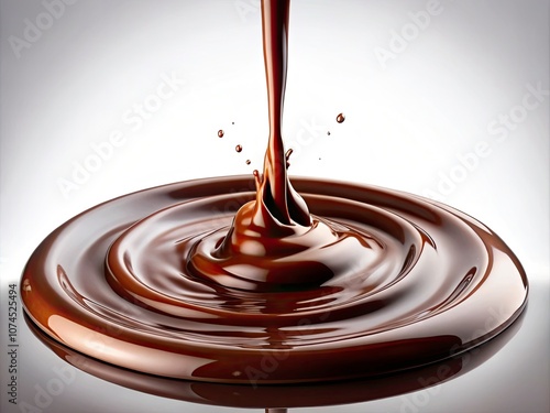 Pouring Rich Chocolate on a White Background - Captivating Drips and Textures for a Delicious Visual Experience
