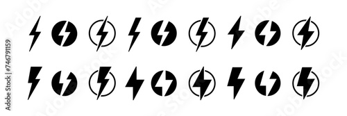 Power lightning charging logo icons. Vector black thunderbolt electricity and energy power symbols isolated on transparent background