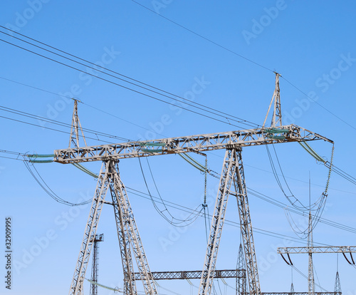 Power lines on the blue sky background