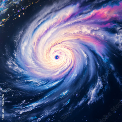Powerful Hurricane Swirling in Vibrant Colors over the Ocean from a High Altitude Perspective