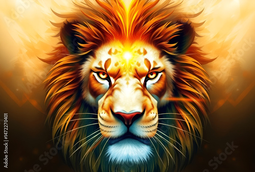 Powerful Lion Face with Divine Light and Spiritual Glow
