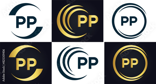 PP logo. P P design. White PP letter. PP, P P letter logo design. P P letter logo design in FIVE, FOUR, THREE, style. letter logo set in one artboard. P P letter logo vector design.