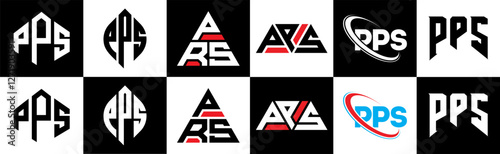 PPS letter logo design in six style. PPS polygon, circle, triangle, hexagon, flat and simple style with black and white color variation letter logo set in one artboard. PPS minimalist and classic logo