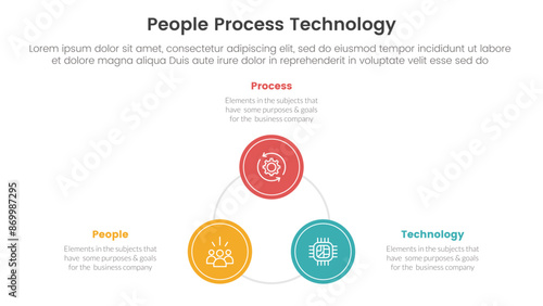 PPT framework people process technology infographic 3 point with circle triangle shape cycle circular for slide presentation