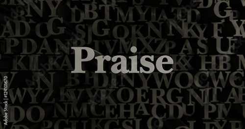 Praise - 3D rendered metallic typeset headline illustration. Can be used for an online banner ad or a print postcard.