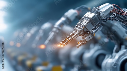Precise robotic arms efficiently work in a bright industrial setting. AI Generated