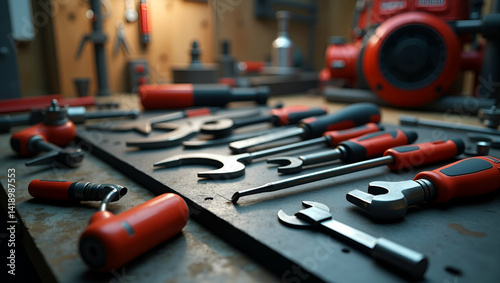 Precision Engineering Tools on Robust Workbench: Expert Craftsmanship & Durability for Professional Trades - Labor Theme Photo Stock