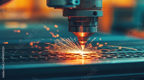 Precision Laser Cutting Process Creating Sparks and Heat in Industrial Workshop Environment