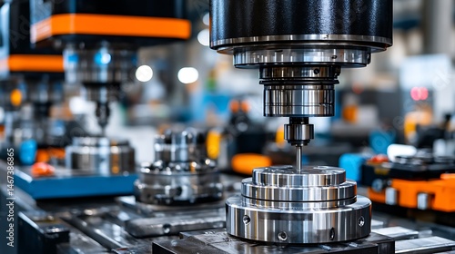 Precision Metalworking CNC Machine Close up During High Precision Manufacturing Process