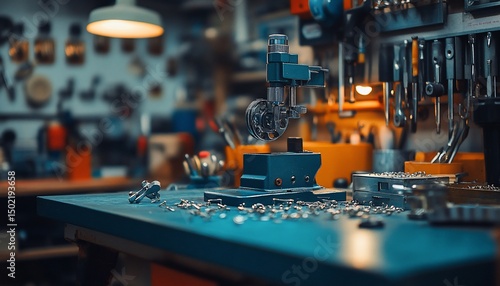 Precision tooling and metalworking: A workshop scene with drilling machine in focus