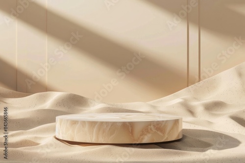 Premium Background for cosmetic products of natural beige color Stone podium on the sand background