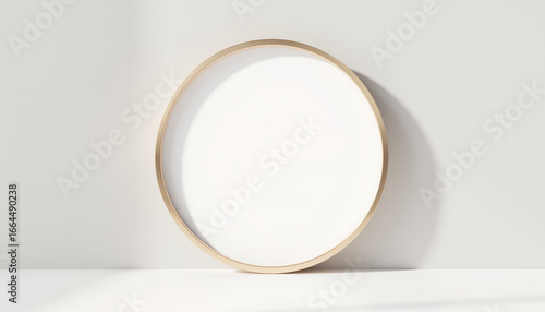 Premium circular picture frame mockup on neutral background for portrait display with copy space