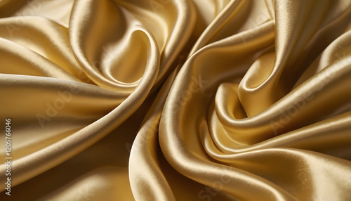 Premium Gold Fabric Texture High-resolution 4K image of wavy satin in rich gold. Smooth texture with soft folds and radiant highlights ideal for luxury branding or abstract design needs.
