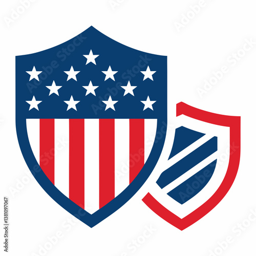 Premium modern shield vector set for 4th of July, featuring bold American flag elements.