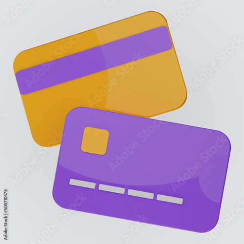 Premium Purple and Yellow Credit Card Shopping Icon 3D rendering