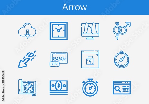 Premium set of arrow line icons. Simple arrow icon pack. Stroke vector illustration on a white background. Modern outline style icons collection of Jpg, Cloud computing, Money
