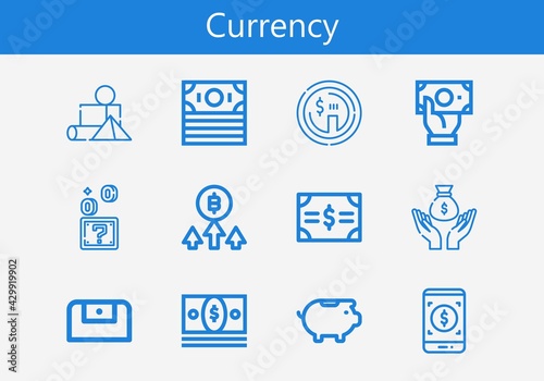 Premium set of currency line icons. Simple currency icon pack. Stroke vector illustration on a white background. Modern outline style icons collection of Money, Purse, Blocks, Dollar, Coins