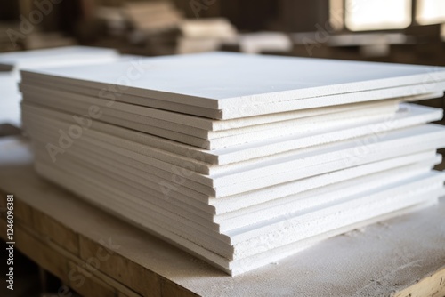 Preparing for Construction - Stack of Gypsum Boards for Drywall on Black Background. Essential Material for House Industry and Floor Build
