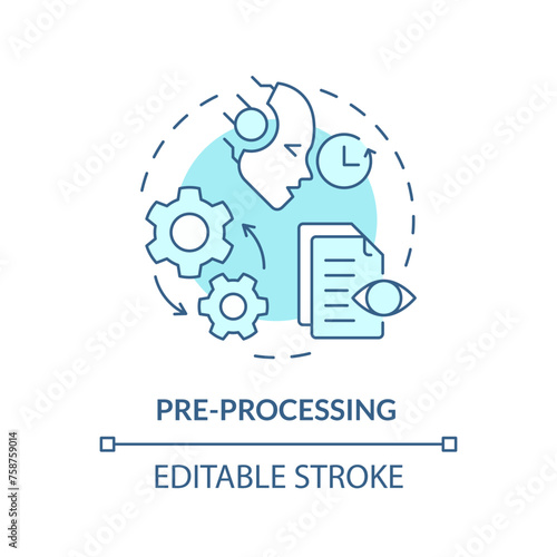 Pre-processing soft blue concept icon. Virtual assistant, transformative tools. Data processing. Round shape line illustration. Abstract idea. Graphic design. Easy to use in infographic