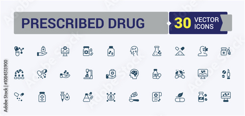 Prescribed Drug thin line icon set. Includes icons for syrup, pain, tablet, chemistry, capsule and more. Thin outline icons pack. Solid line editable vector illustration.