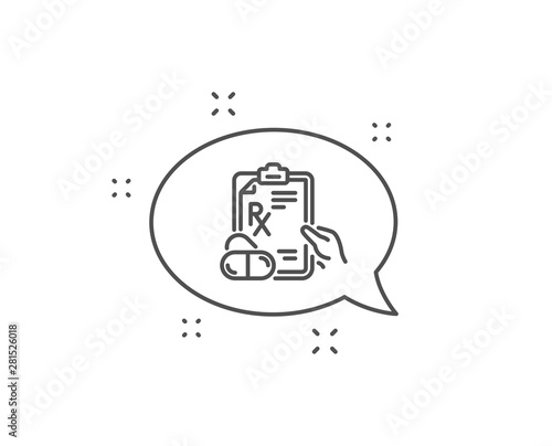 Prescription Rx recipe line icon. Chat bubble design. Medicine drugs pills sign. Outline concept. Thin line prescription drugs icon. Vector