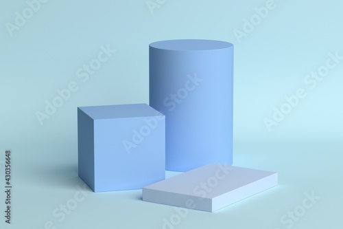 Presentation stand on a light background, minimalist style. Scene with geometric shapes. Free and clean podium for brand presentations of their products. 3D render