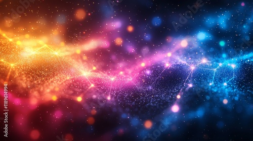 Presidents' Day promotion background concept with a vibrant abstract digital backdrop featuring glowing geometric shapes in blue, purple, and orange hues