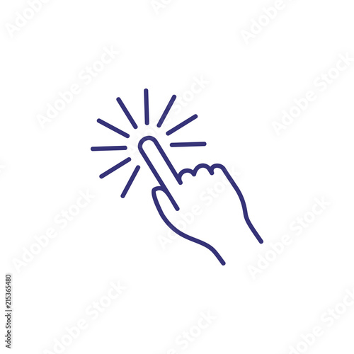 Press line icon. Human hand, finger, tap, beams. Gesturing concept. Can be used for topics like app design, guidance, mobile application