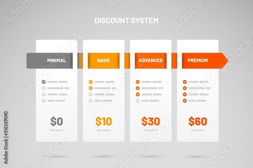 Pricing comparison table. Infographic design template for website or presentation. Discount table.