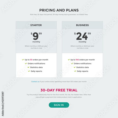 Pricing table vector illustration, pricing plan web page design, ui price subscription list comparison flat modern template design website