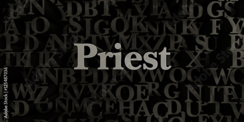 Priest - Stock image of 3D rendered metallic typeset headline illustration. Can be used for an online banner ad or a print postcard.