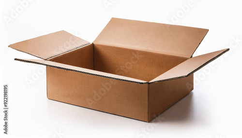PrintA simple brown cardboard box with open flaps, placed against a white background. Ideal for packaging, storage, or moving purposes.