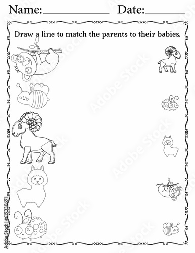 Printable Matching Activity Pages for Kids | Matching Activity Worksheets for Fun | Match Animals to Their Babies