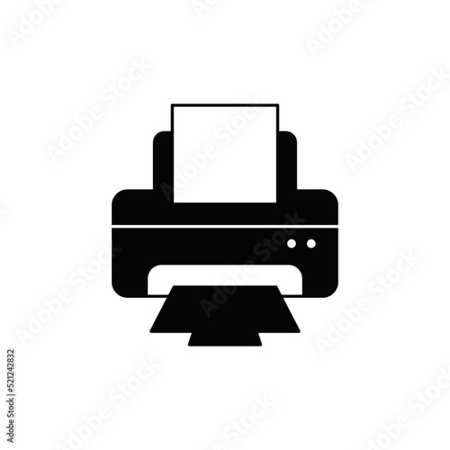 printer icon in black flat glyph, filled style isolated on white background