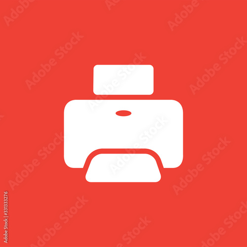 Printer Icon On Red Background. Red Flat Style Vector Illustration