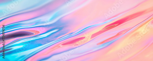 Prismatic streaks of light reflecting in soft pastel tones, creating a glowing holographic effect, filled with rainbow reflections and shimmering hues.
