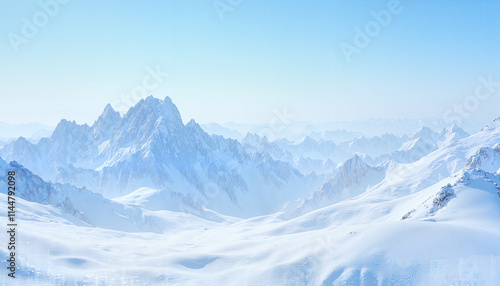 Pristine Snow-Capped Mountain Range Under Crystal Clear Sky in Winter Solitude