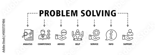 Problem solving banner web icon set vector illustration concept with icon of analysis, competence, advice, help, service, information and support icons infographic symbol background