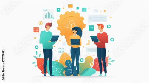 Problem-solving workshop, team tackling complex issues, flat design illustration