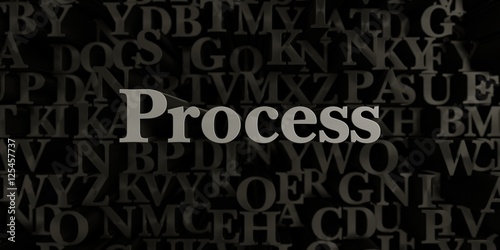 Process - Stock image of 3D rendered metallic typeset headline illustration. Can be used for an online banner ad or a print postcard.