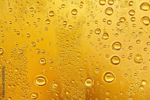 Processed collage of golden yellow oil bubbles texture. Background for banner, backdrop or texture for 3D mapping with generative ai