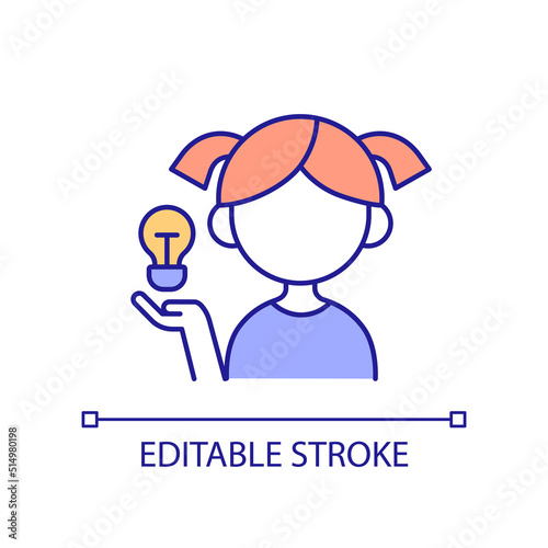 Prodigy RGB color icon. Genius child. Highly intelligent kid. Incredibly smart little girl. Mental ability. Isolated vector illustration. Simple filled line drawing. Editable stroke. Arial font used