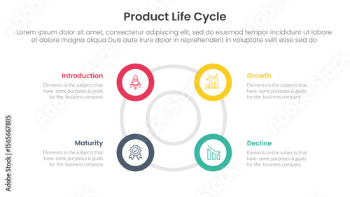 product life cycle stages infographic 4 point stage template with big circle circular cycle outline shape for slide presentation